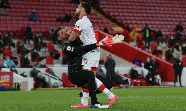 利物浦的防线依然难以用稳定形容,但客队在面对机会时太过挥霍,最终也因此受到惩罚。先是利物浦防线门户大开,南安普敦几名球员在无人逼抢、无人盯防的情况下,可以自如地瞄准和跑位,然而亚当斯和雷蒙斯在禁区内外接连出脚,都被阿利松设法化解,还直接送给利物浦一个打反击的机会。